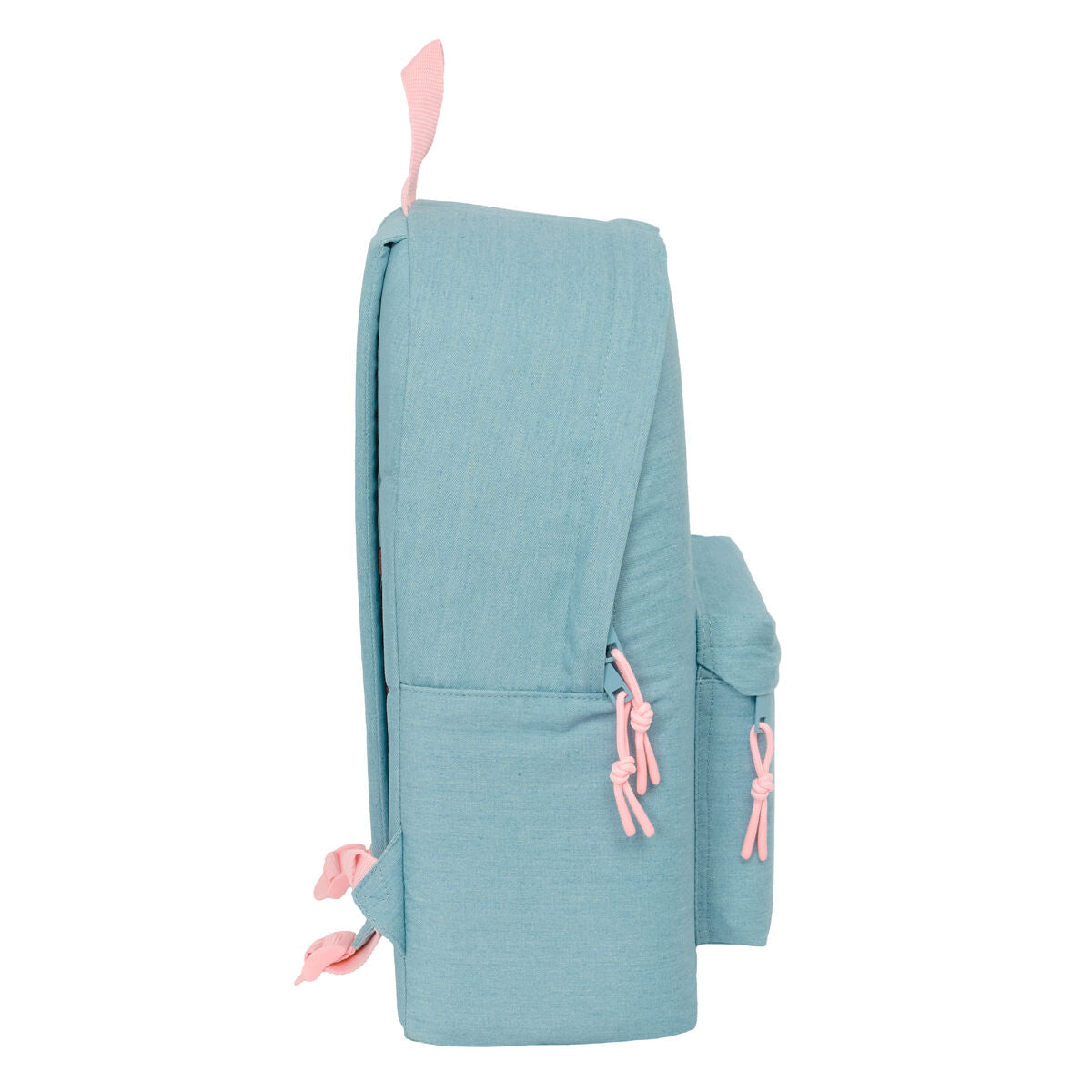 Lasten reppu, jossa on päälokero kahden suuntaisella vetoketjulla ja vetoketjullinen etutasku.