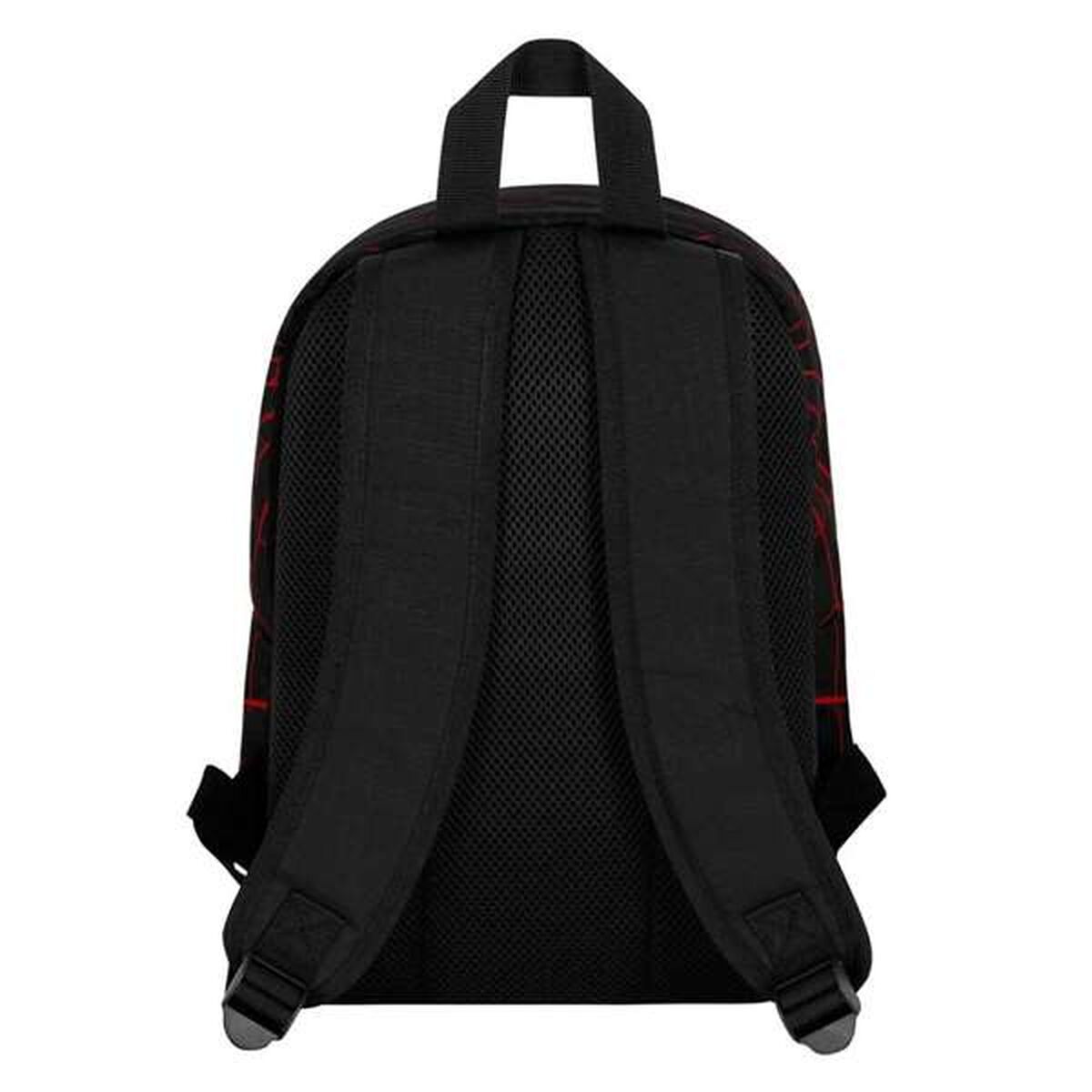 Pienehkö lasten reppu, jossa on päälokero kahden suuntaisella vetoketjulla ja vetoketjullinen etutasku.