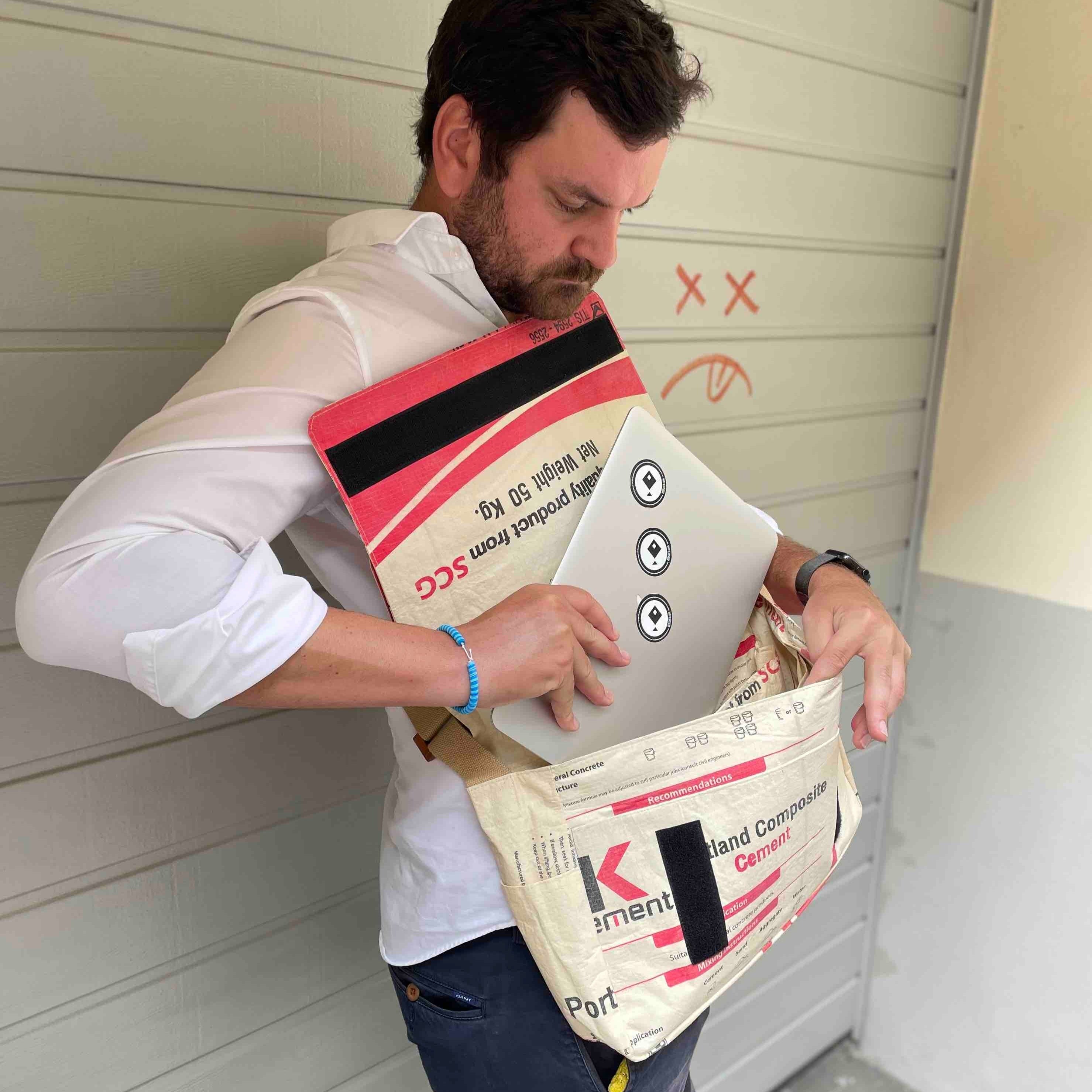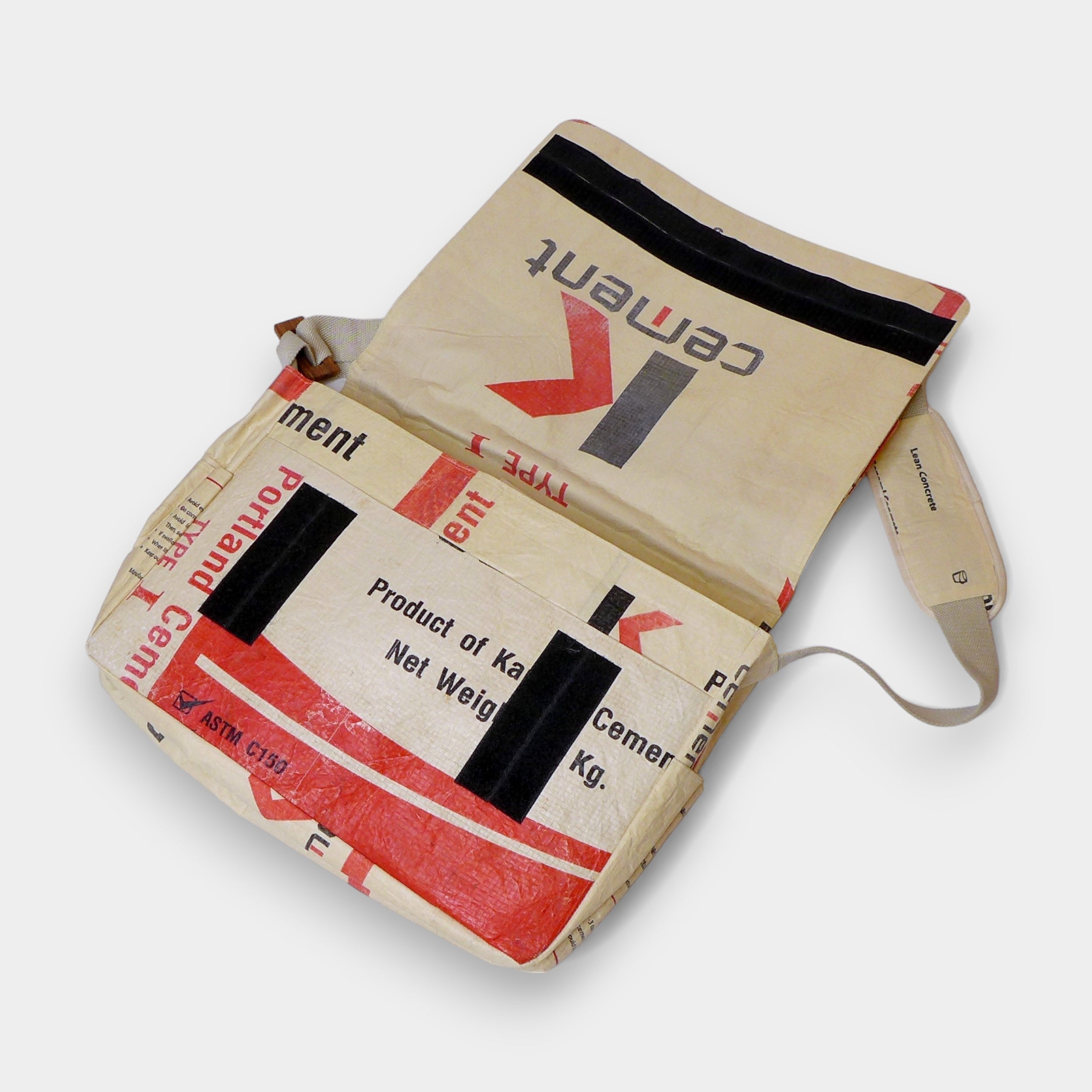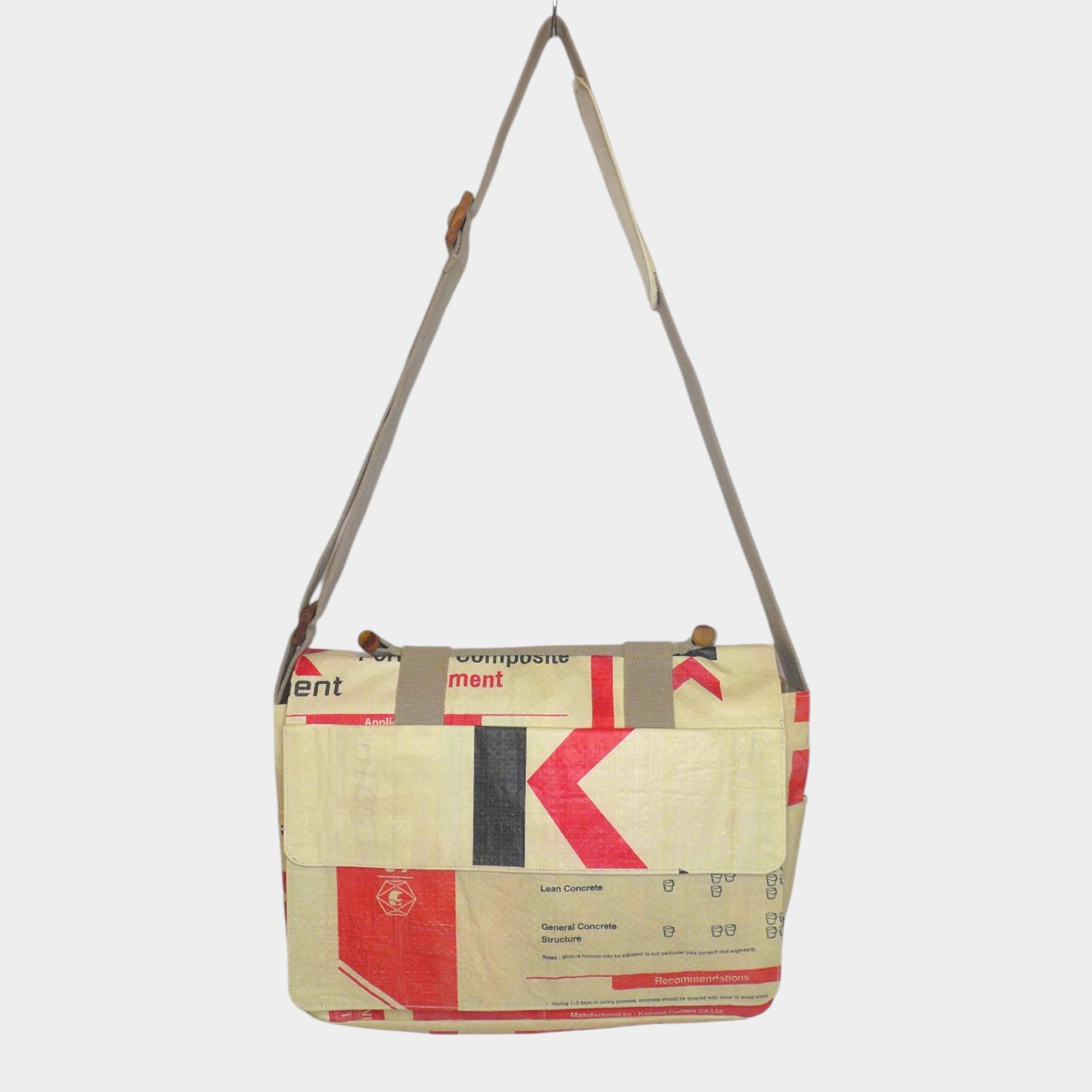 Sementtisäkeistä valmistettu lähettilaukku - Refished beige, punainen, musta