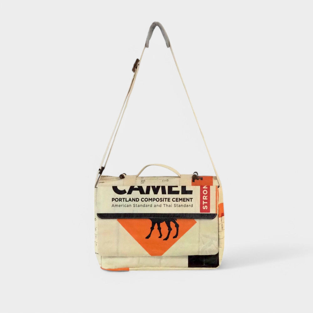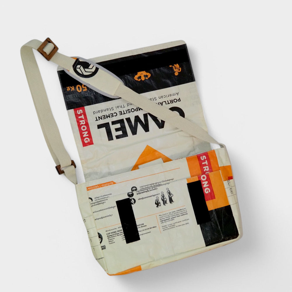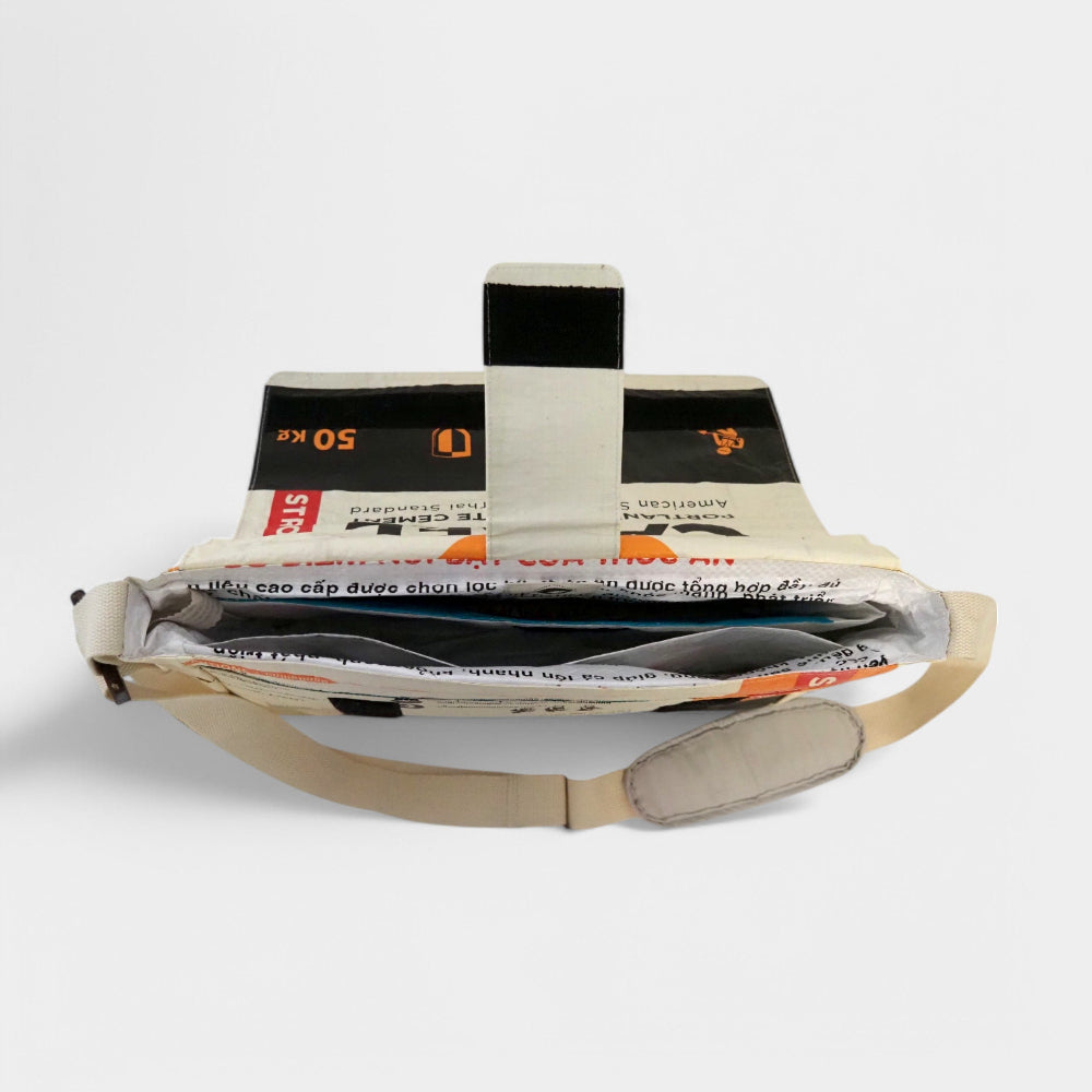 Tarvitsetko laukun, joka pitää kaikki tärkeät tavarat järjestyksessä ja helposti saatavilla? Tämä kierrätetyistä sementtisäkeistä valmistettu lähettilaukku on suunniteltu juuri sinulle, joka arvostat organisointia, toimivuutta ja vastuullisuutta.