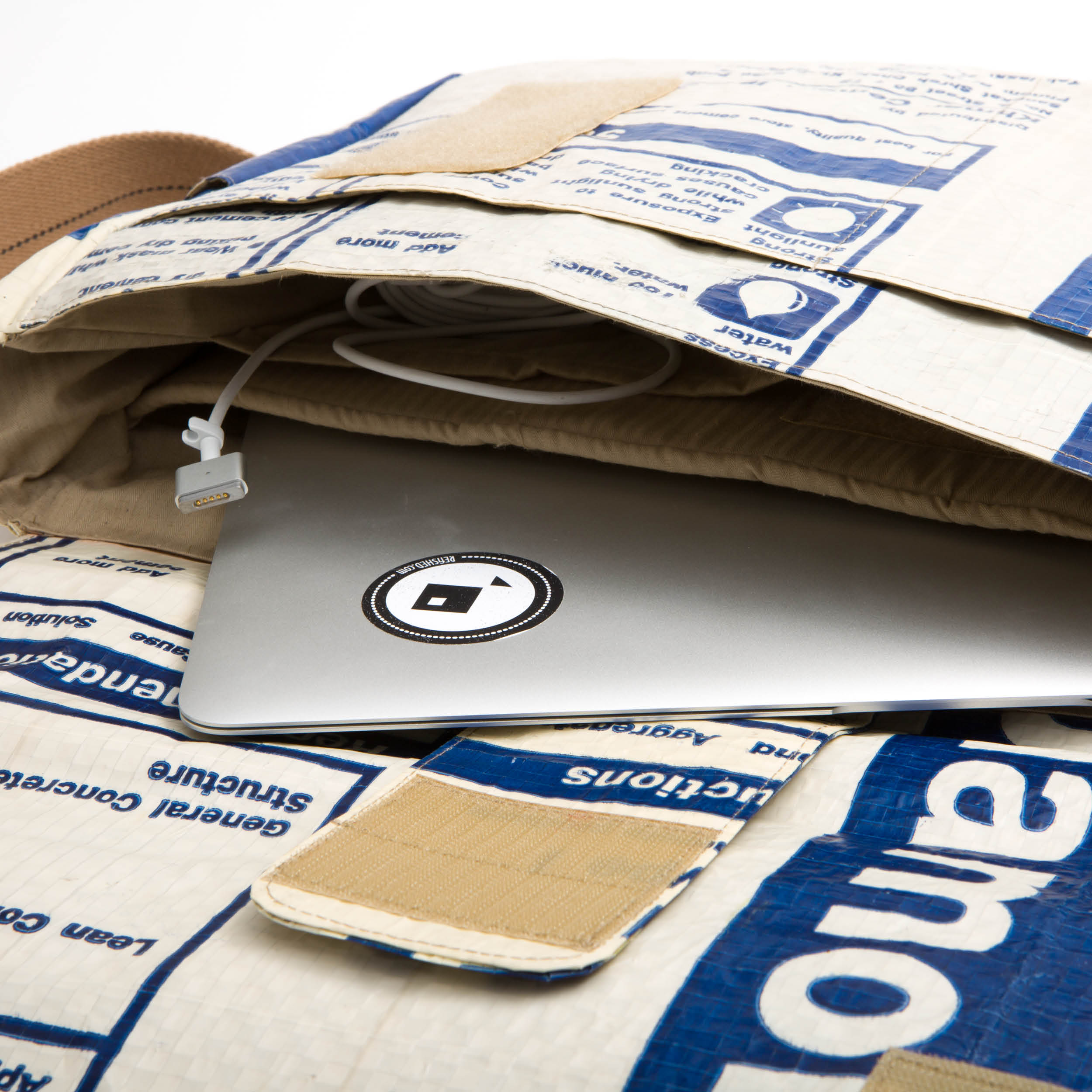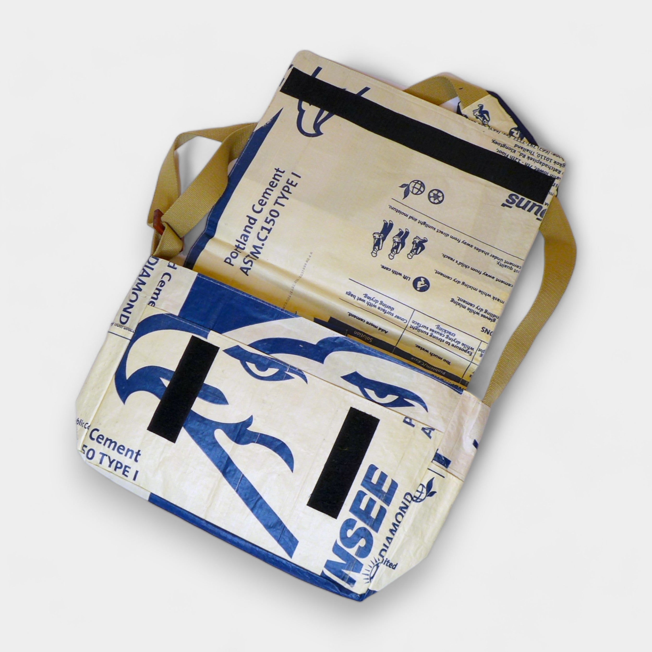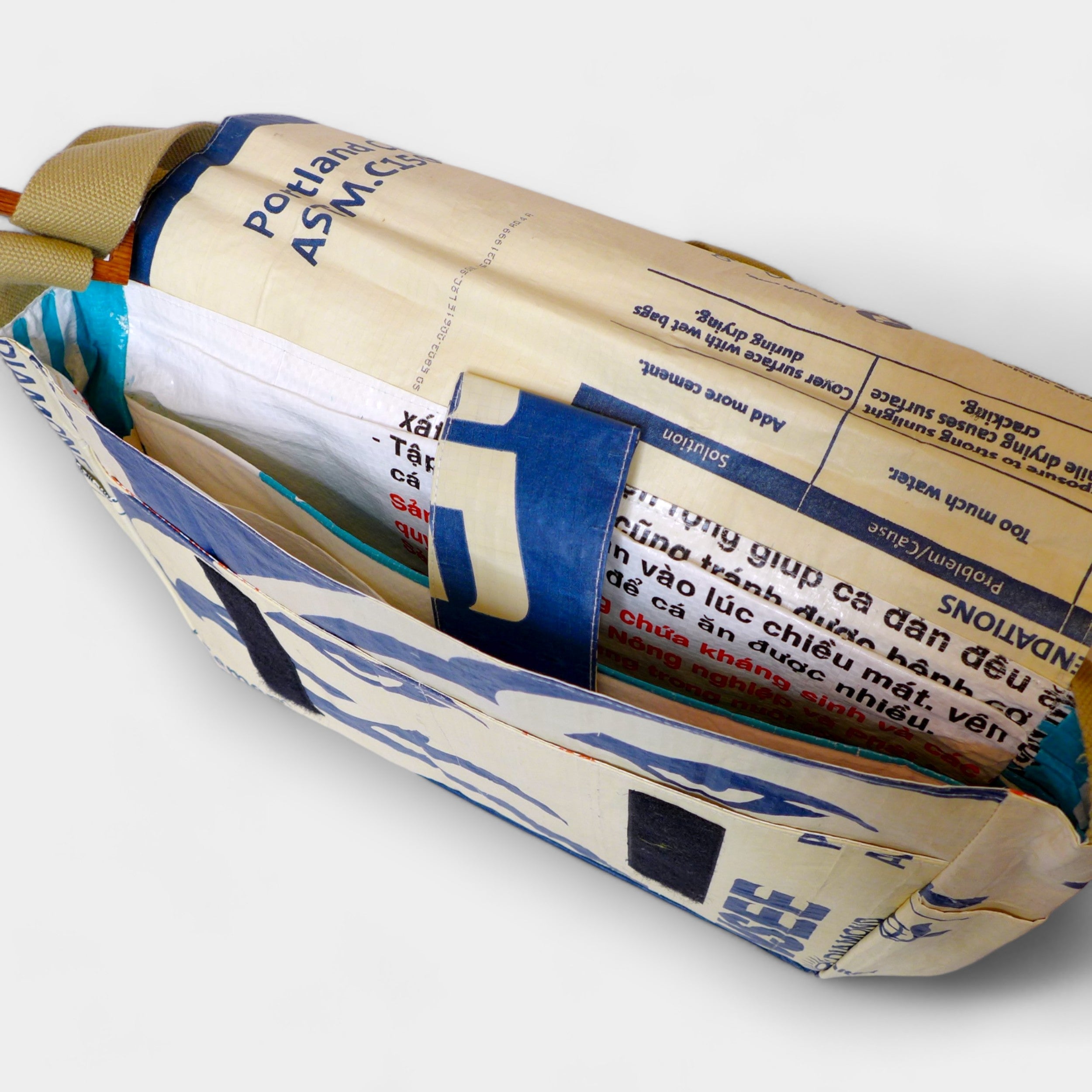Sementtisäkeistä valmistettu lähettilaukku - Refished beige sininen